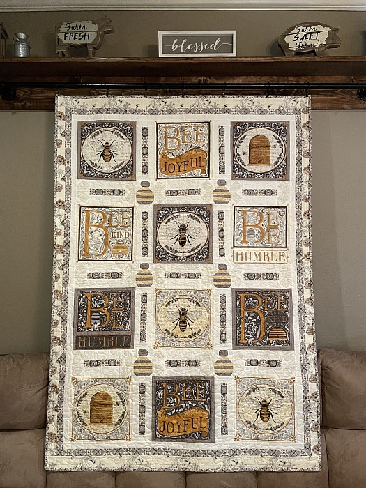 This quilt is made from the Cotton Joy collection by Timeless Treasures and the pattern is 1000 Words by Hanna Bourque at Miss Winnie Designs. The rustic wood and burlap are simply stunning in this quilt, not to mention the prayer that’s perfect for everyone! This quilt will be for sale once completed! Finished size will be 66 x 86 inches.